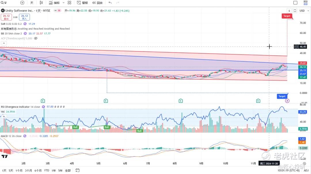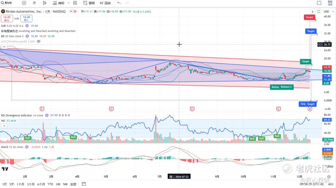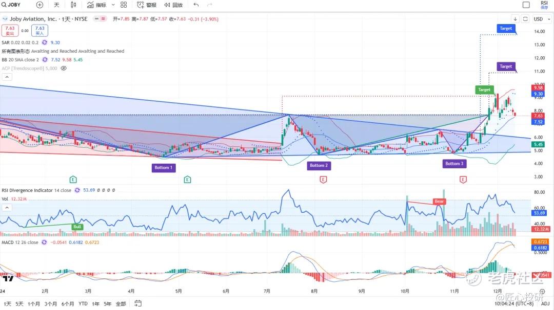 两个看涨目标价,一个三重底,一个三角形,但是最近开始有点弱势