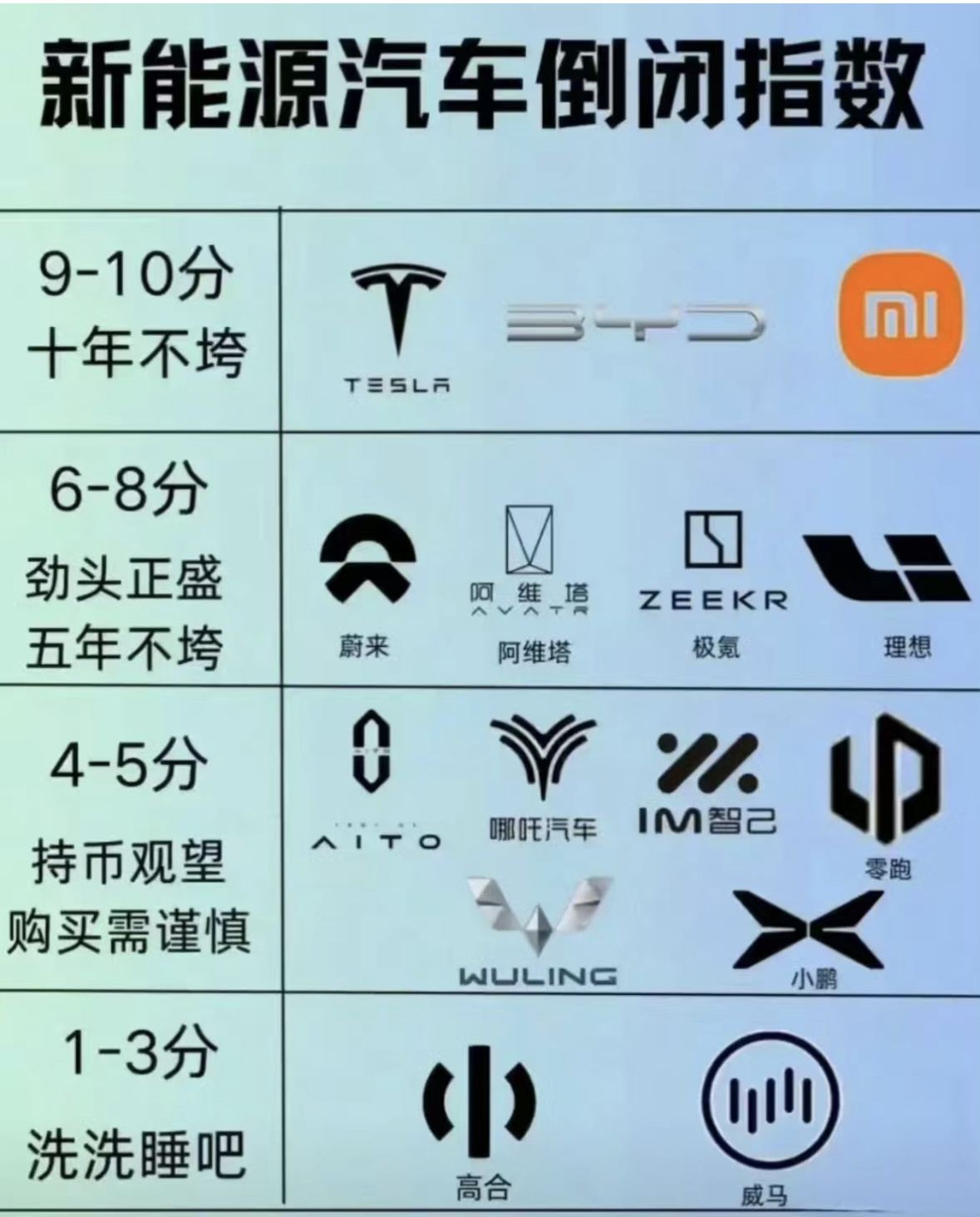 所以在销量为王的时代,大家觉得主流新能源品牌下一个倒闭的会是谁?2025年你还看好新能源车发展前景吗?[疑问]