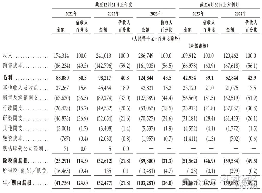 毛利:2021年毛利8808万人民币,2022年毛利9821.7万人民币,2023年毛利1.25亿人民币,截止2024年6月30日最近12个月毛利1.34亿人民币。
