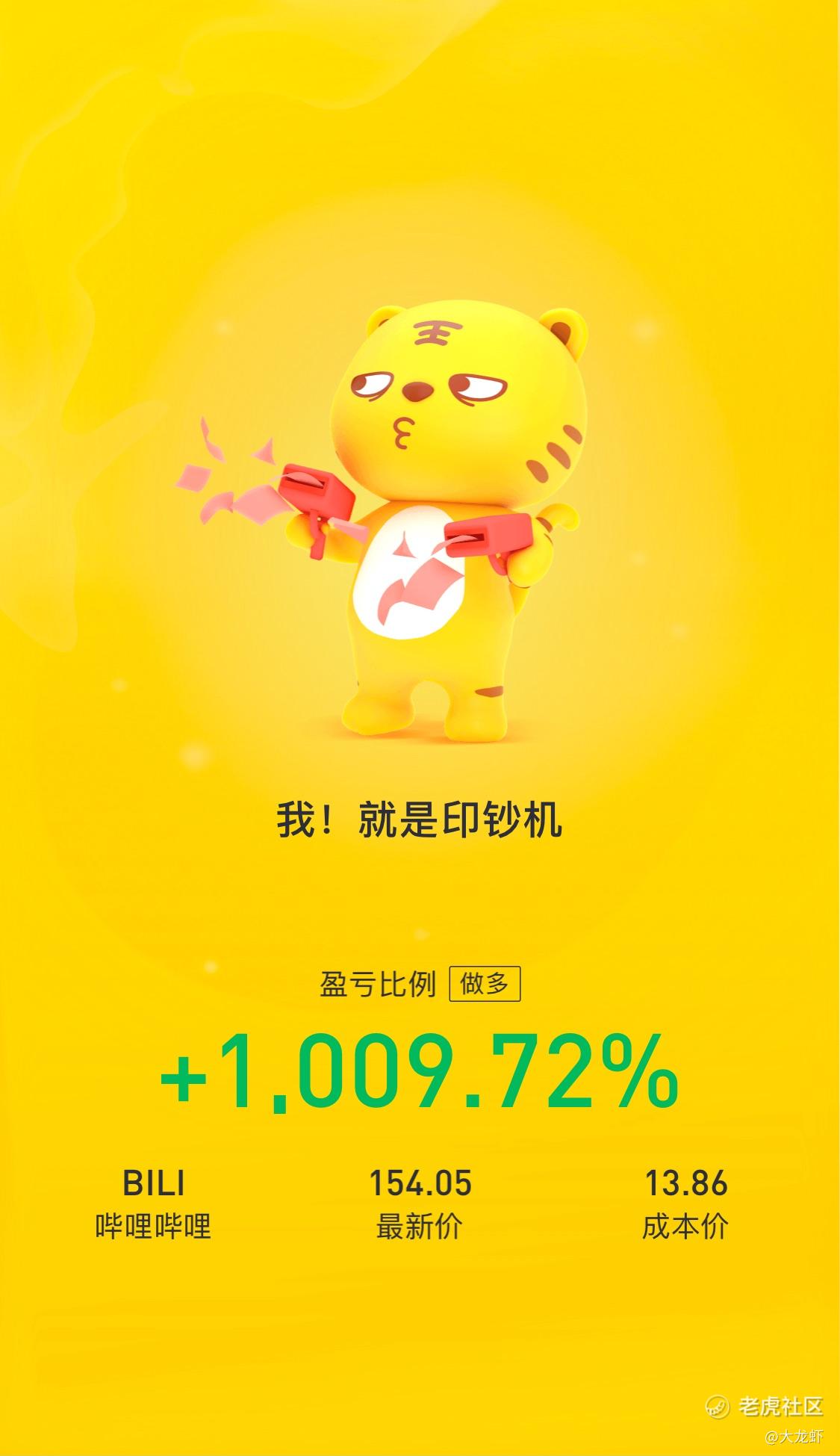 $哔哩哔哩(BILI)$解锁人生第一支10倍股成就,本来计划5年达成的,没想到一年半就到了,小破站果然没有看走眼,继续加油吧,兄弟们