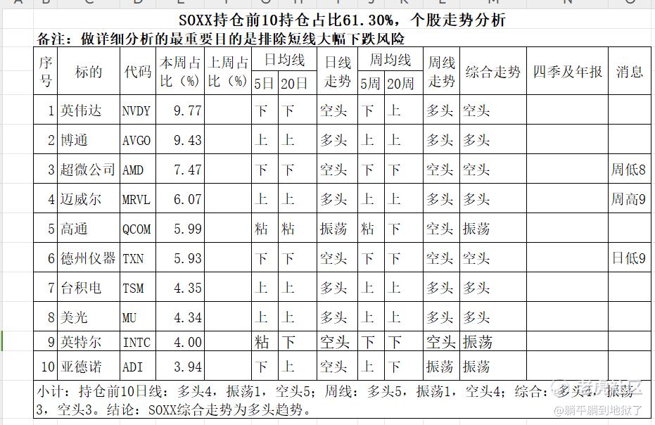 五、SOXX持仓前10持仓走势:占比61.30%,上周 %(见图)。