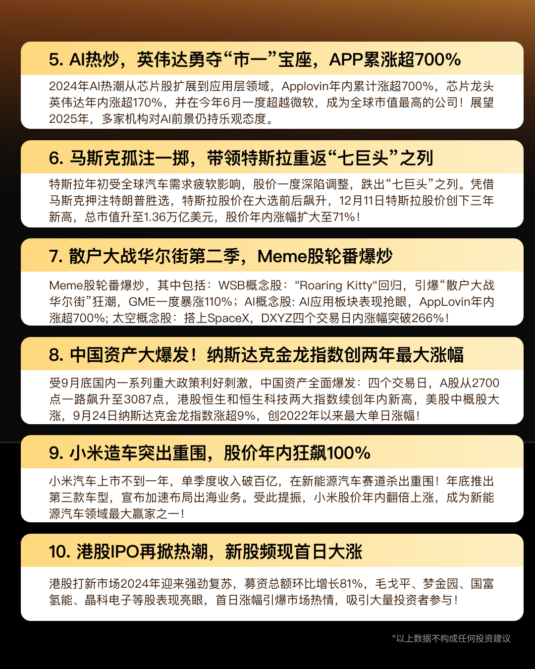 2024选举年,资本市场热闹非凡:降息周期开启,特朗普胜选助力市场狂欢,AI热潮延续……让我们先来盘点一下这些“热搜”事件,看看哪些最吸引你的眼球吧![鼓掌]