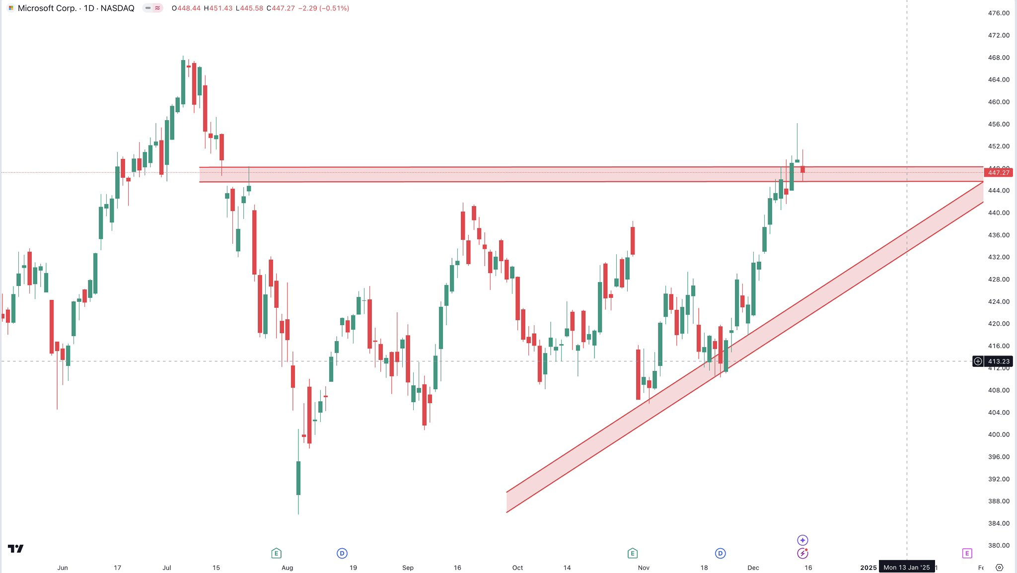 $微软(MSFT)$ 在最近摆脱了盘整,呈现出上升三角形突破,去之前的一个下跌缺口进行了回补。接下来要看微软在这个价格区域站稳,才有继续向上的动能。