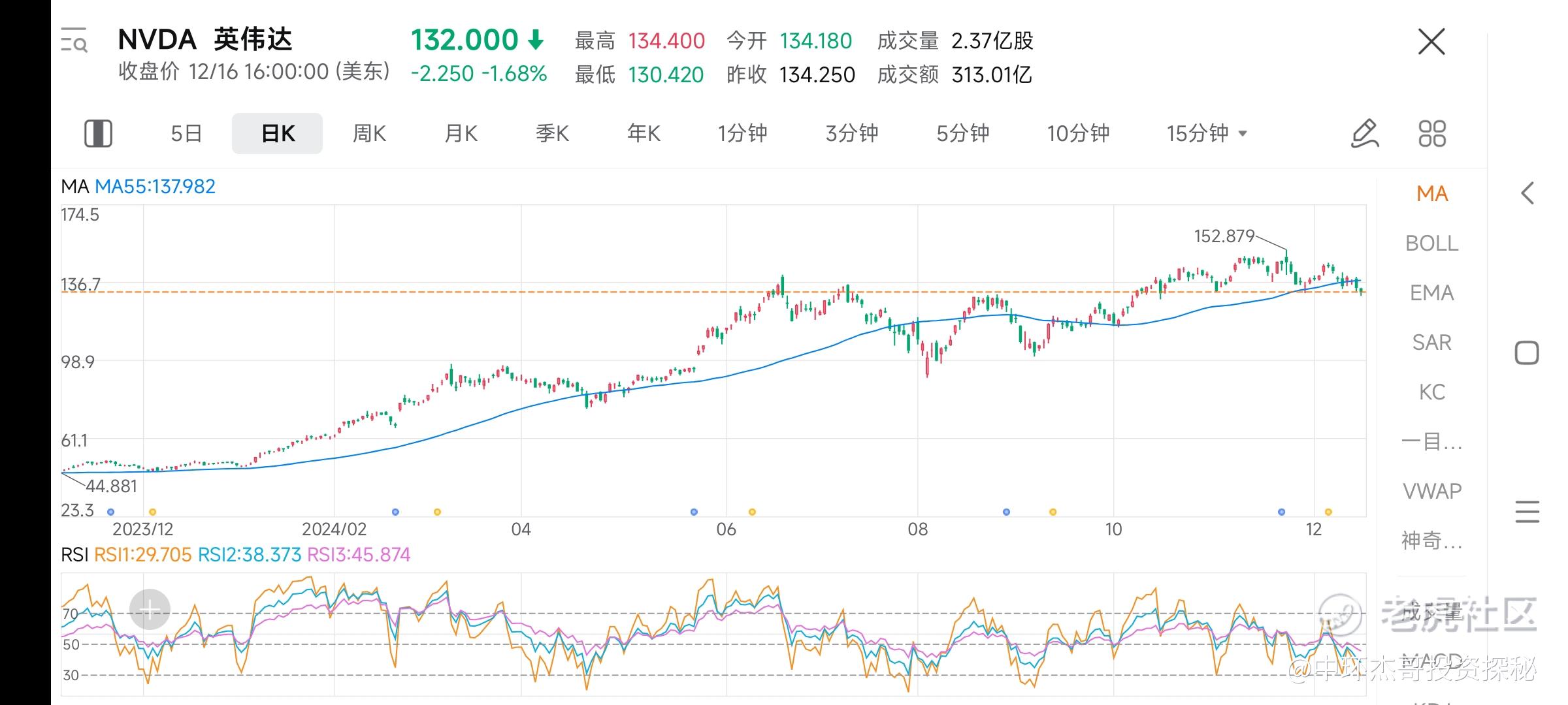 英伟达就复杂得多,震荡走势是很难判定方向的,诱多与诱空也特别多,随机性特别强。没仓位的,肯定不要介入,有仓位的,自己要好好取舍。中短期肯定不是很好。从基本面看,国内的垄断审查依然笼罩,更重要的是,博通的专有芯片一时风头无限,跷跷板效应显露无疑。技术面看,短周期明显下挫走势,中期看,前期高点位置有一定的支撑作用,长期看,英伟达一定会再创新高,所以,结合自己的持仓状态来取舍吧。
