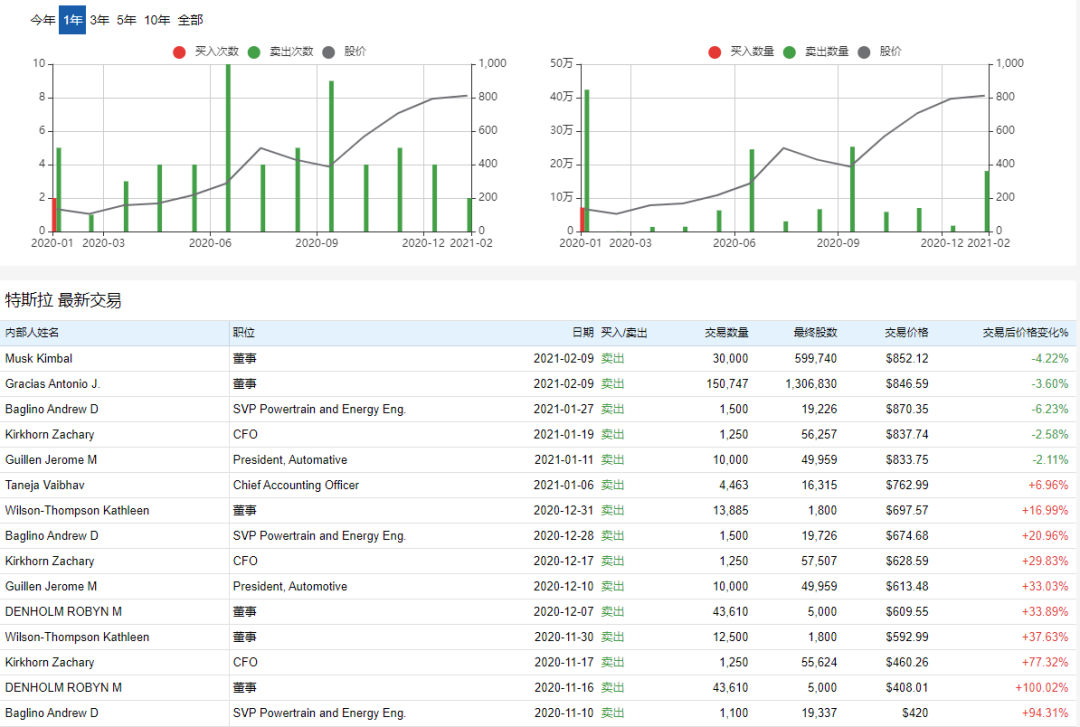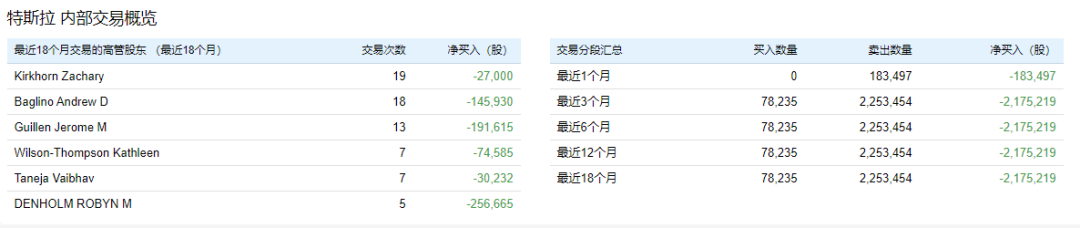 此外,价值大师中文站新增的“内部交易”功能显示,最近1个月特斯拉内部人交易共卖出183,497股,最近1个月没有内部人买入。不过卖多买少,在任何大型股的内部交易中都不罕见,因此单一的内部人交易数据还不能证明,高管对特斯拉未来的股价失去了信心。