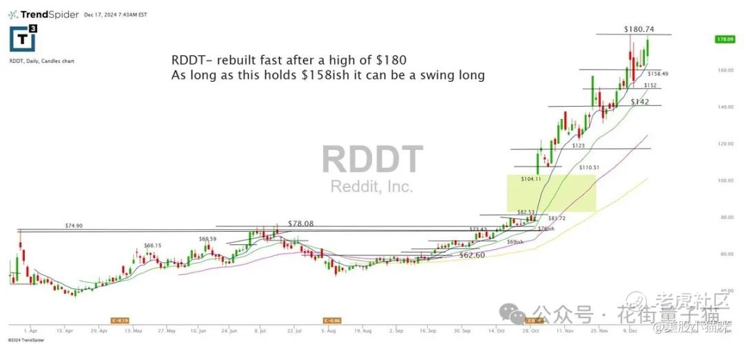 RDDT 在触及 $180 高点后快速重建涨势。只要股价能够守住 $158 附近,就有望作为一个“波段做多”的机会。