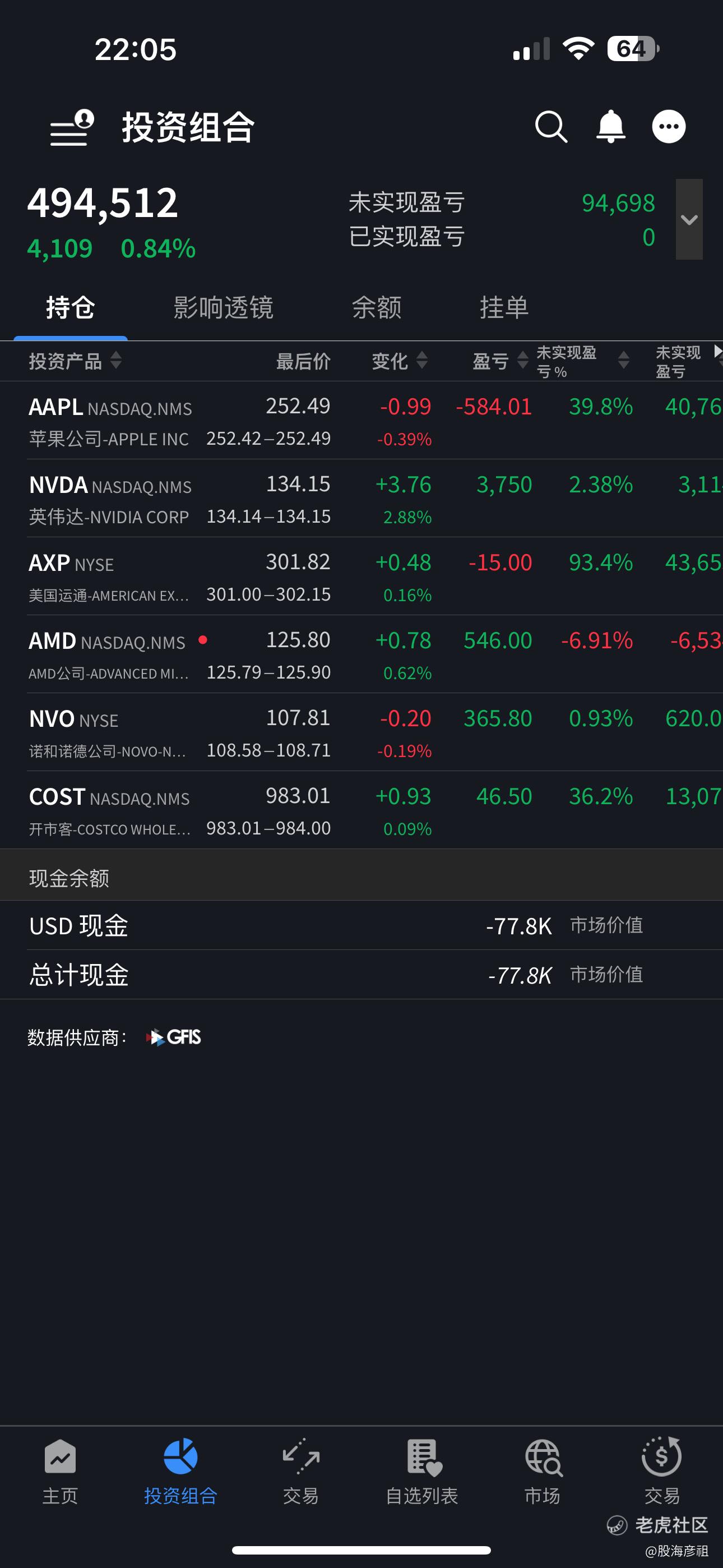 今天丈母娘摔了一跤,腰椎骨折,目前已手术,折腾了一天,很累了,晚安 $苹果(AAPL)$ $英伟达(NVDA)$ $美国超微公司(AMD)$ $美国运通(AXP)$