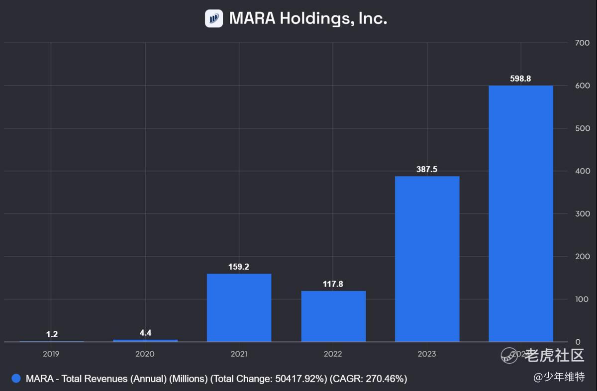 2019 年的收入仅为 120 万美元,到 2024 年,这一数字激增至近 6 亿美元,总增幅高达 50,418%,复合年增长率高达 270%。从股价上来看,仍具备极大空间,目前市值接近80亿。