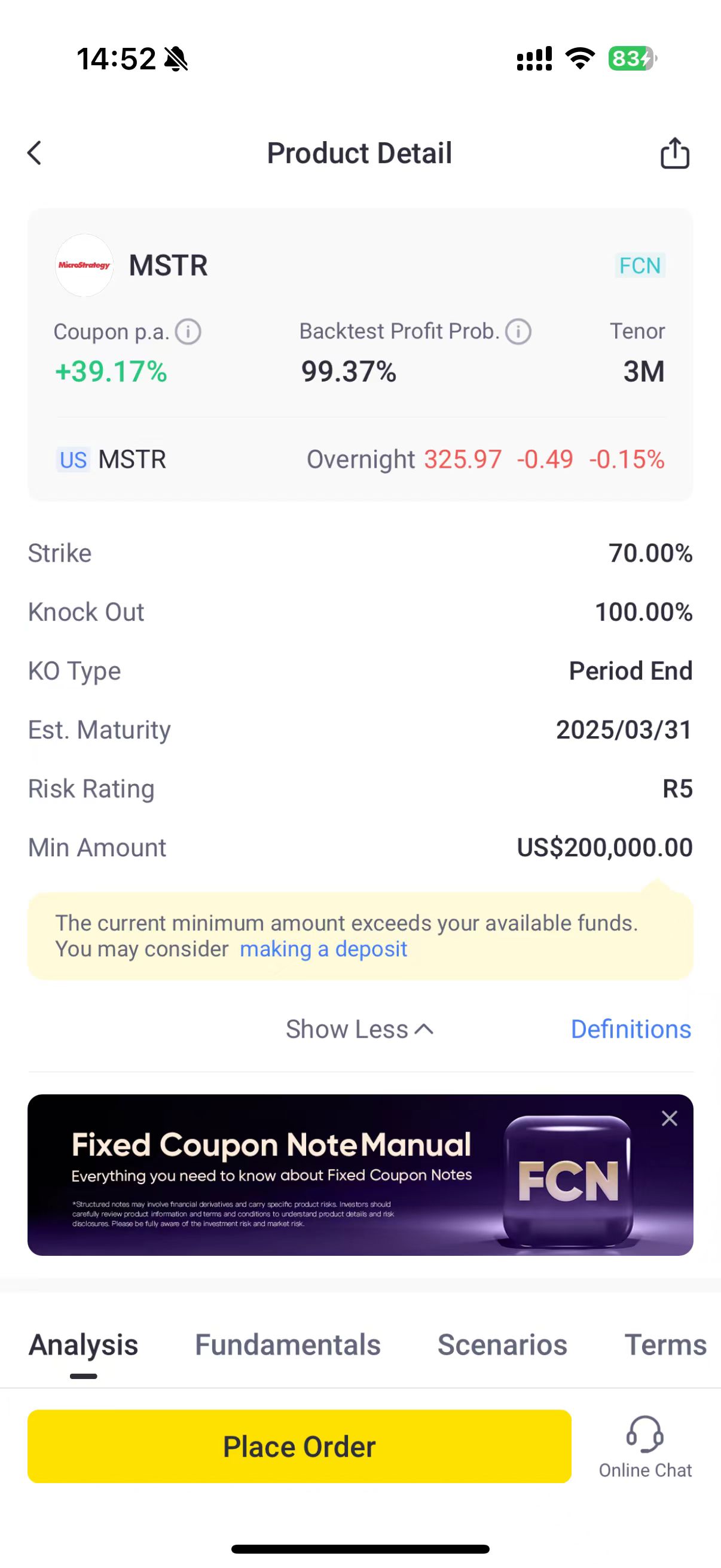先说票息率,年化39%也就意味着3个月票息收益13%左右,虽然比起前段时间MSTR疯涨时候的票息率略微下降,但是此时的执行价比率是基于暴跌之后的股价,也就是目前的326美金的70%,等于228美金,这个价位安全性有多大呢?