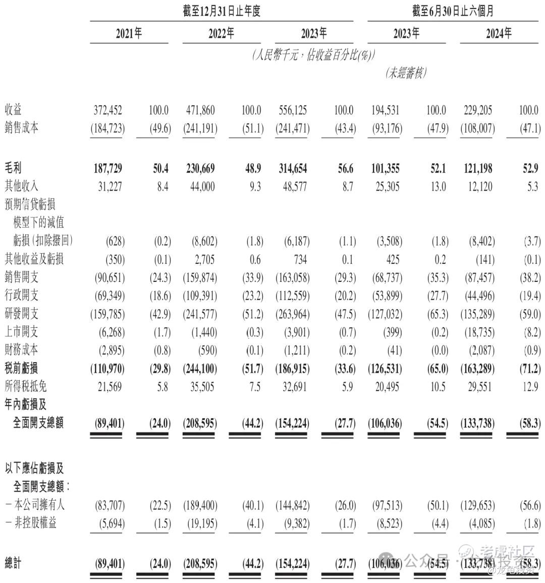 毛利:2021年毛利1.87亿人民币,2022年毛利2.30亿人民币,2023年毛利3.14亿人民币,截止2024年6月30日最近12个月毛利3.34亿人民币。