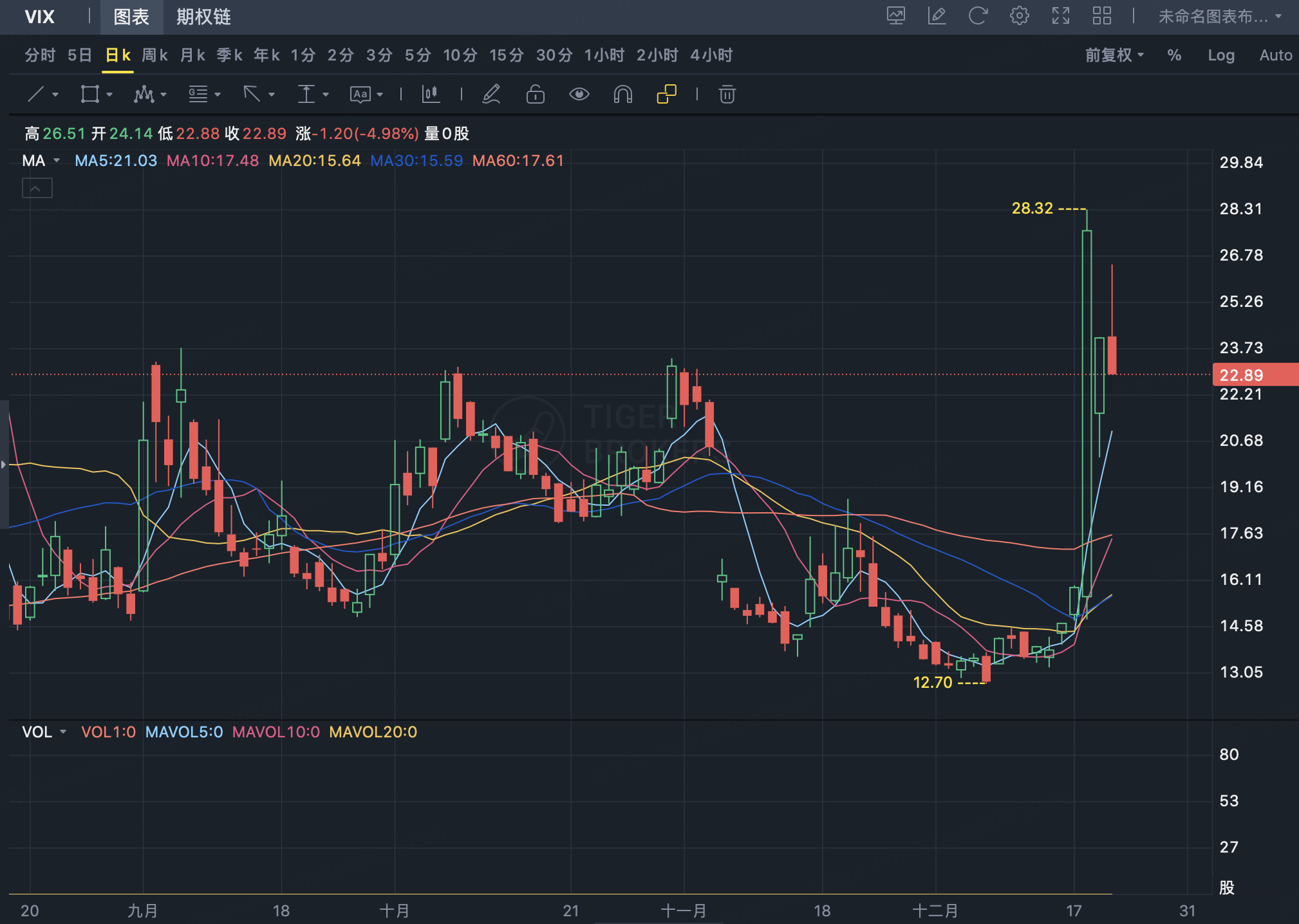 暴跌第三天周五,也是三巫日,vix开盘依旧维持高位。