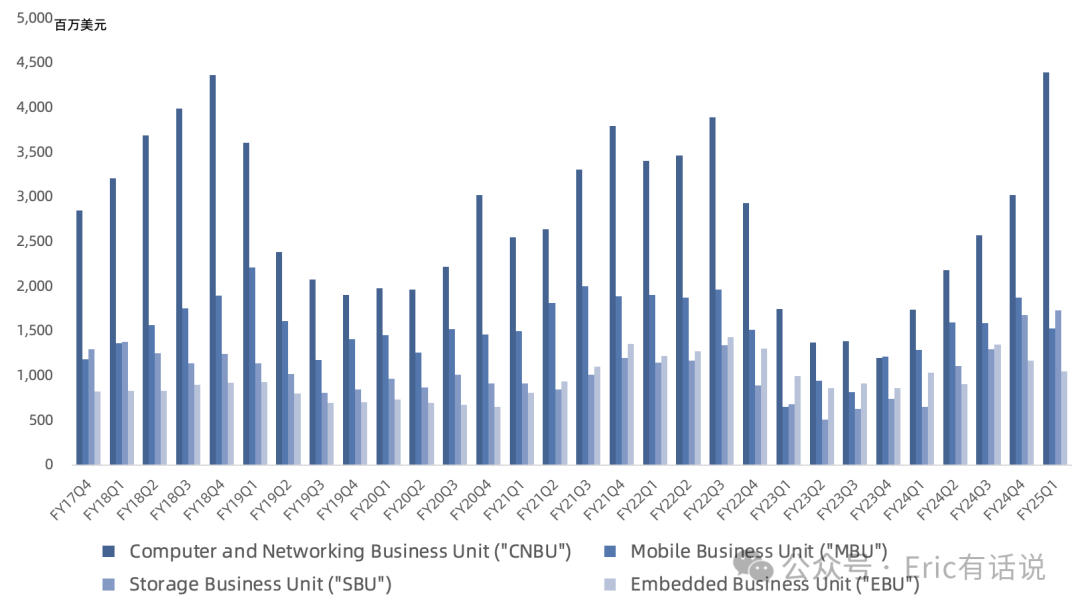 预计下季度DRAM bit出货环比小幅下滑NAND bit出货环比大幅下滑未来数据中心仍是主要增长点(本季度CNBU/SBU经营利润环比增长89%/60%)消费电子相关需求超预期疲软(本季度MBU/EBU经营利润环比下滑36%/90%)客户将去库存至2025年春季FQ2出货量不及预期预计FY25H2出货恢复增长