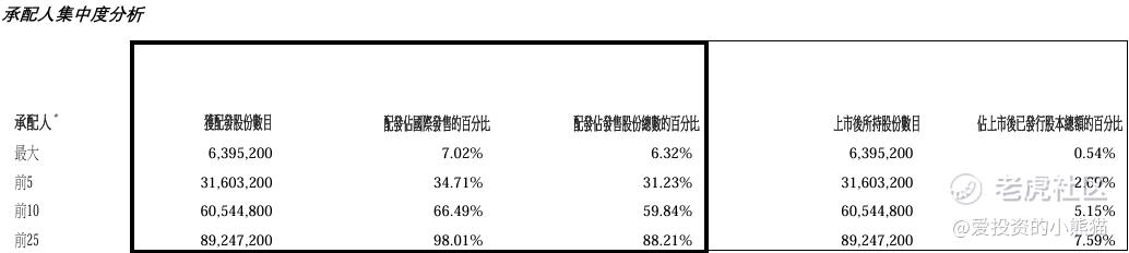 小菜园 (00999.HK)   国配货是很分散,前25大承配人上市后所持股份数目占上市后已发行股份总数7.59%。小菜园 (00999.HK)  这个票稳价人是瑞士银行香港分行,绿鞋失效。