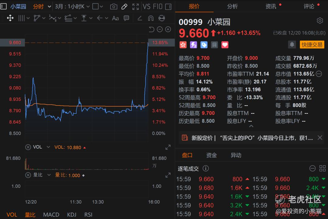 小菜园尾盘冲刺15%,越冷越好!让客户去敲钟了!——(00999.HK)新股配售情况
