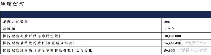小菜园 (00999.HK)  国际配售总共206人,认购额1.79倍。