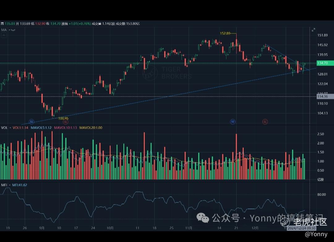 经过几天的调整,谷歌已经从超买的区间走出来了,目前alligator指标还在多头趋势,整体形态很不错,我觉得它应该是mag7里边短期形态最好的吧(符合我交易体系的)。没有理由不开多,下周看看能不能被验证吧。