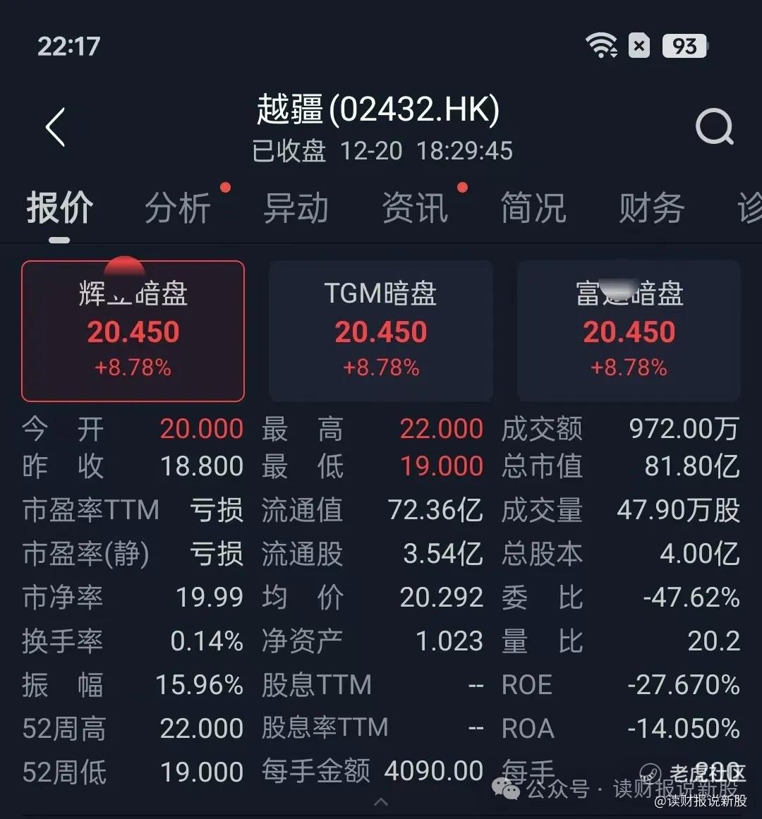 就算讯飞业绩造JIA了,但只要公司做市值管理搞入港股通的话,暗盘和上市首日一样会涨,可以参考同样毛利率造JIA的越疆,越疆暗盘还是上涨了接近9个点呢