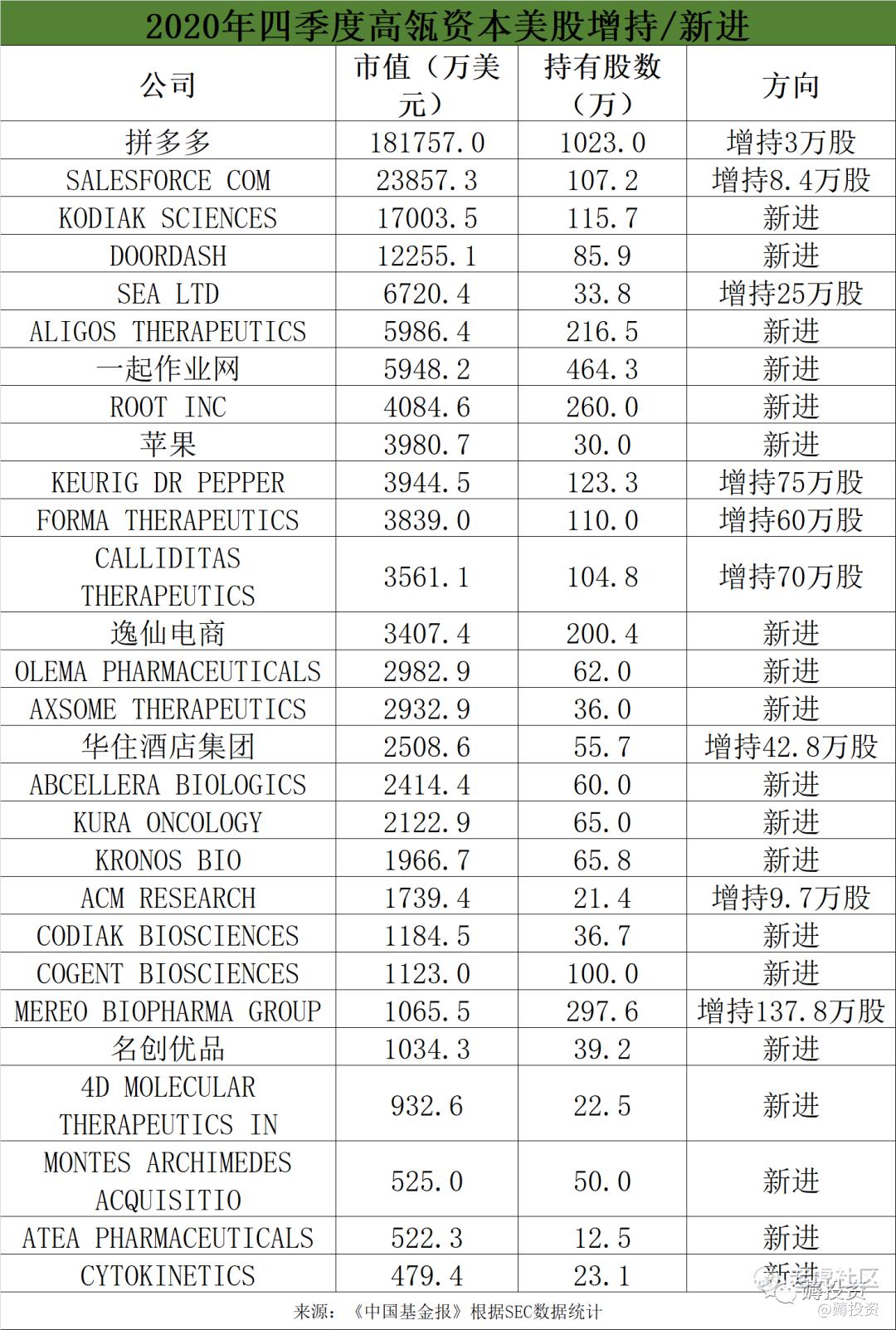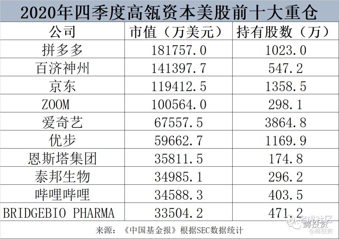 中概股依然占据强势地位,前十大重仓股为:$拼多多(PDD)$ ,百济神州,京东,ZOOM,爱奇艺,UBER,恩斯塔,泰邦生物,$哔哩哔哩(BILI)$ ,Bridgebio Pharma。
