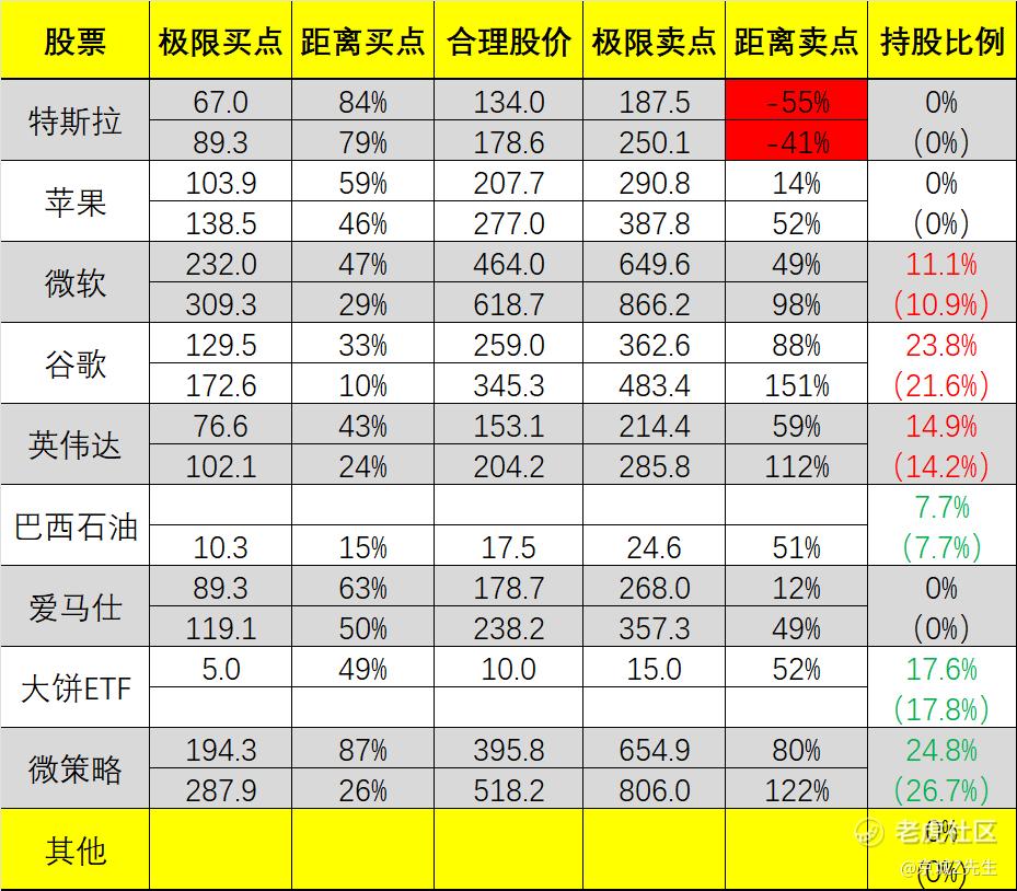 4、表格内相关数字,会随股价波动和我个人对公司的评估,不定期调整,请勿作为长期参考,切记巴菲特都经常判断失误,更何况我等凡人。