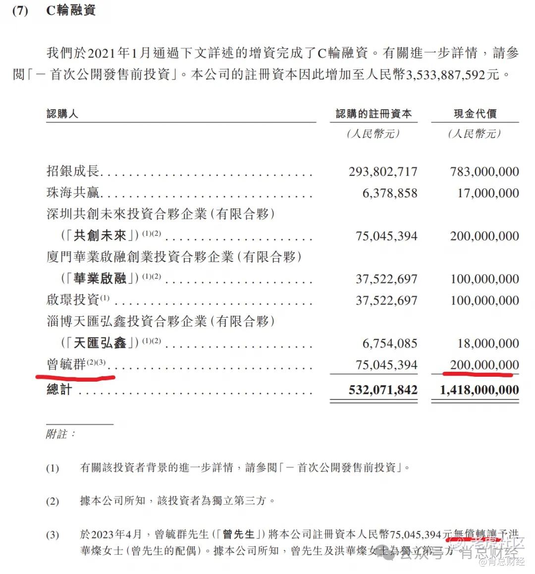 最大客户还是宁德时代,超过30%的营收都靠宁德贡献,而且董事长曾毓群还在C轮融资中投了2个亿,但在23年时候把股份转给他老婆了。