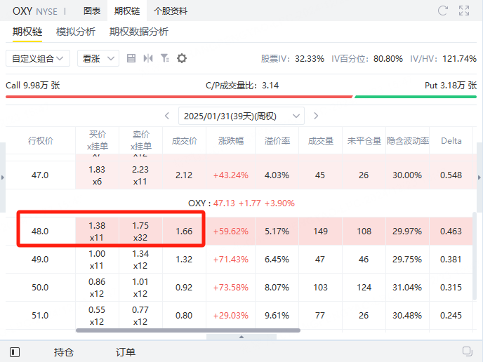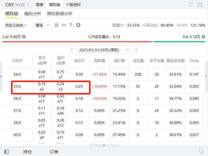 举例说明:如果您看好巴菲特增持的西方石油,可以构建以下策略: