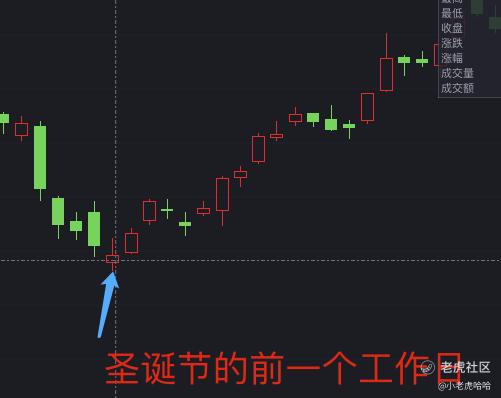 如图:2022年圣诞节前一个开盘日录得涨.后一个开盘日涨。