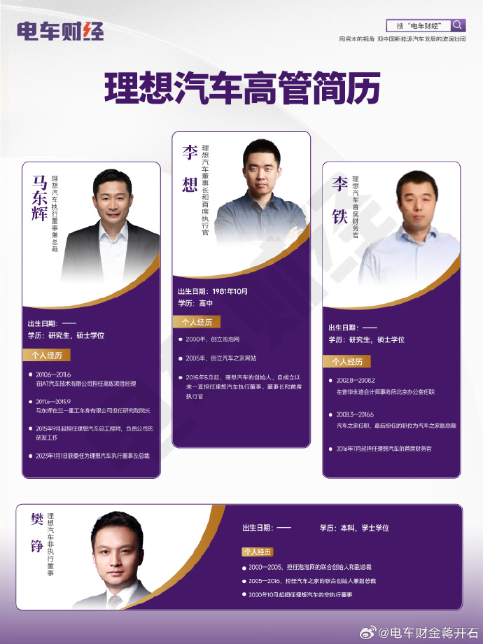理想汽车近两年有以下一些重大人事变动(网络收集整理):