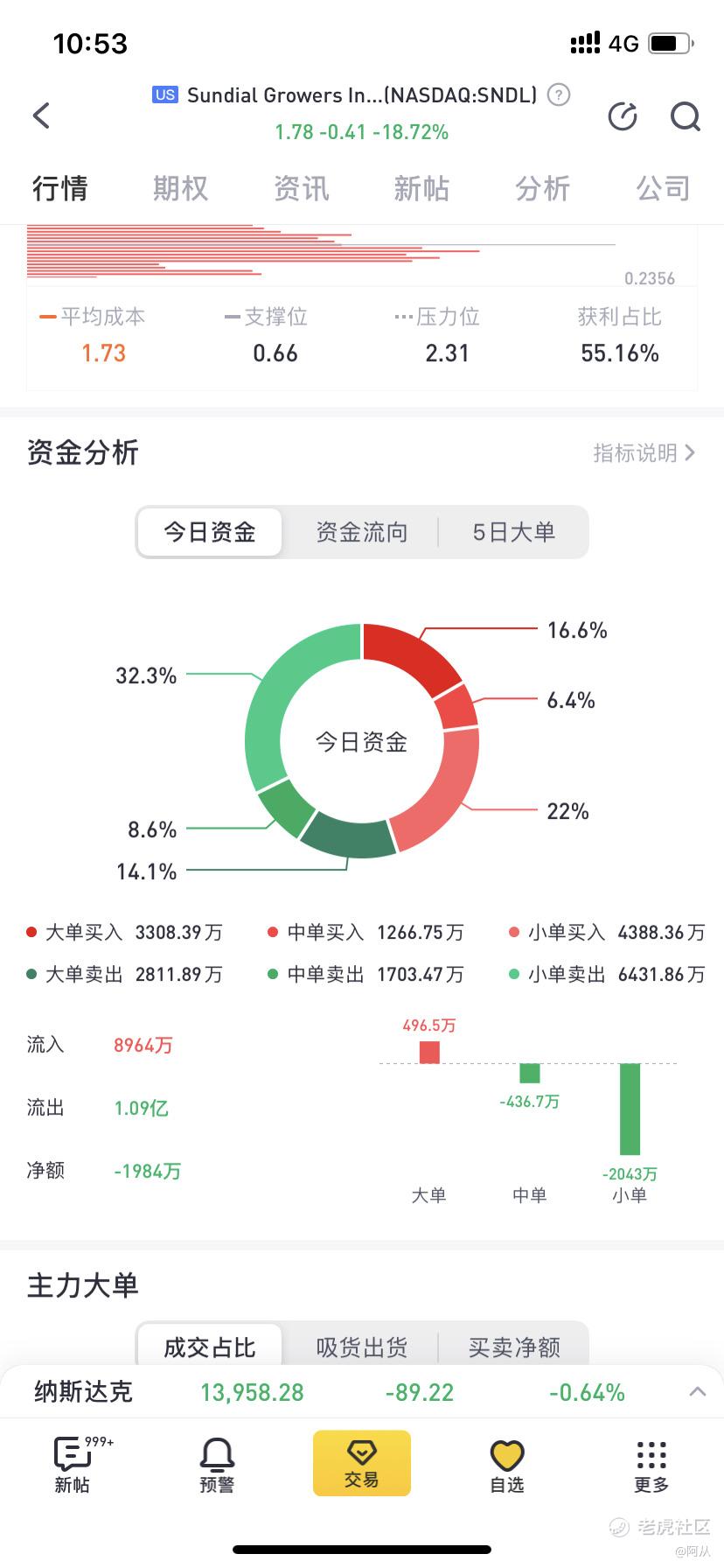 $Sundial Growers Inc.(SNDL)$大单买入的多,卖出的少,小单买入的少,卖出的多,散户跑了,机构来了,拿稳