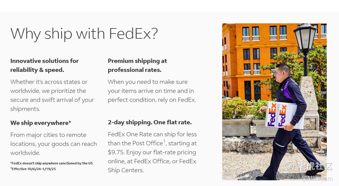 联邦快递(FedEx Corporation)是全球知名的快递运输企业,为客户和企业提供广泛的运输、电子商务及商业服务。 $联邦快递(FDX)$ 拥有庞大的全球网络,年度营收达 870 亿美元,员工超过 50 万人,在快递行业占据重要地位,并致力于在 2040 年实现碳中和运营。