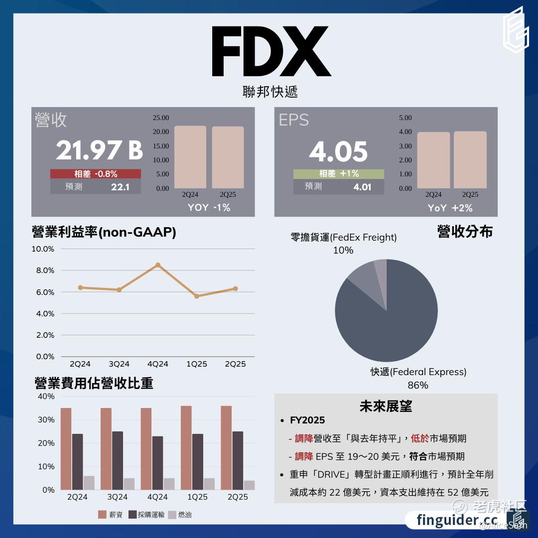 - 营收增长得益于 DRIVE 计划的成本缩减、更高的基础收益率以及国际出口量增加。然而,美国国内市场面临挑战,如邮政服务合同到期和国内包裹需求疲软,同时工资和采购运输费率上升也带来一定压力。