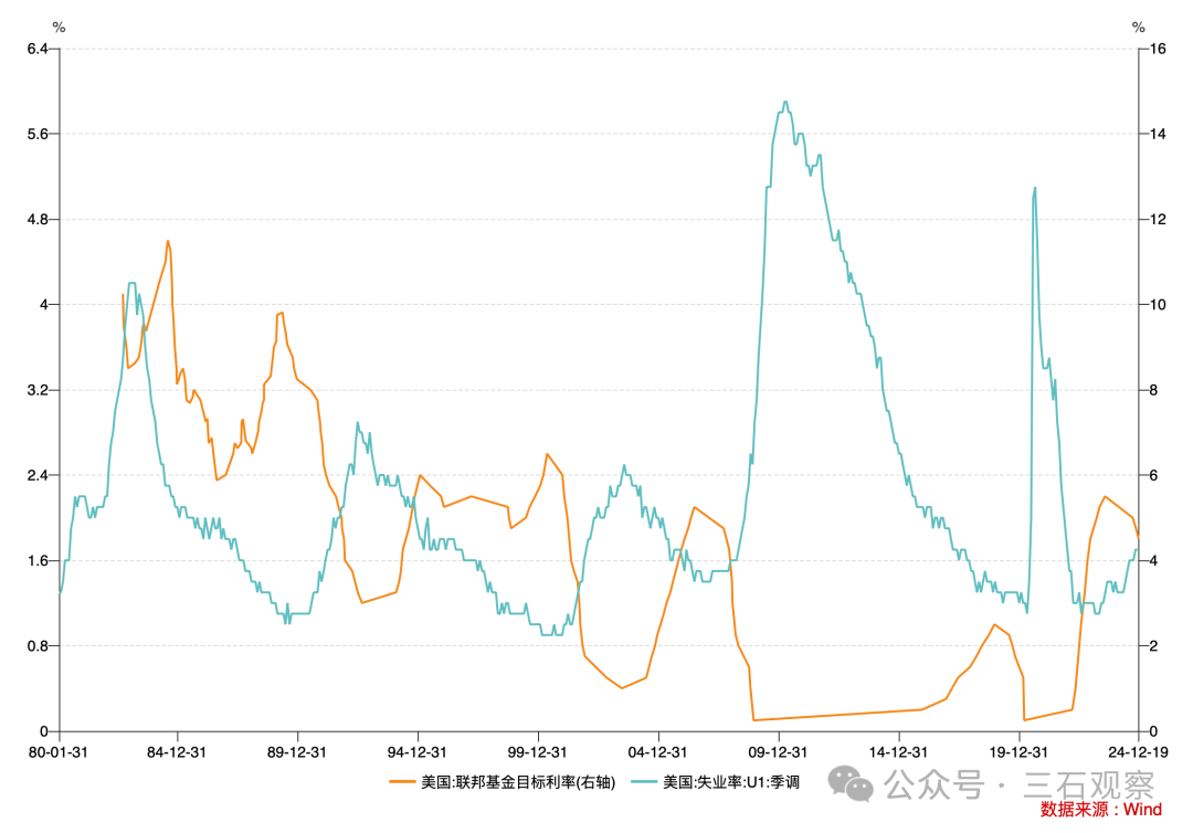 图2 美联储目标利率与失业率