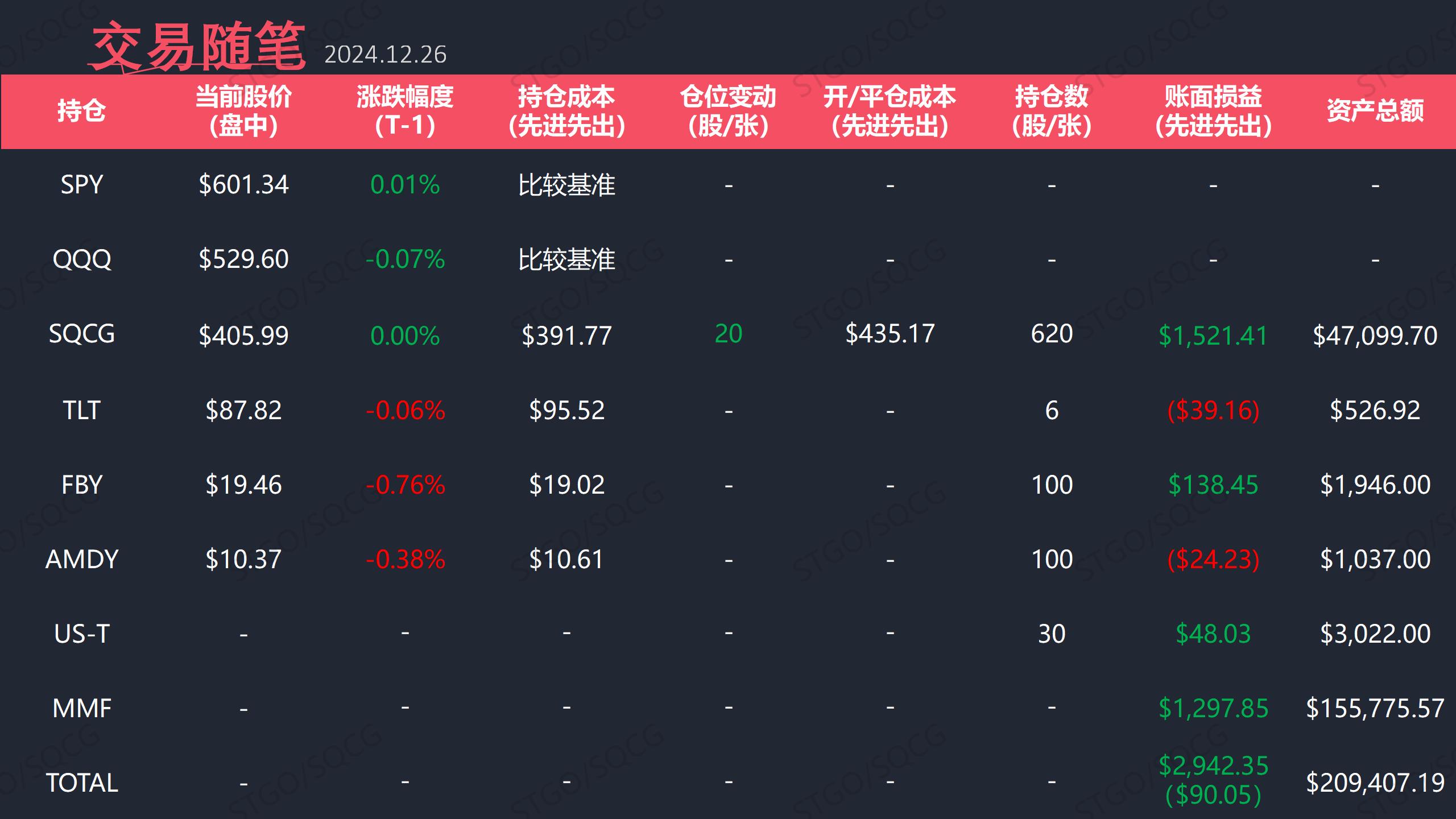 ①SQCG中两个标的ETF共加仓20股,用于平衡全部持仓ETF仓位。