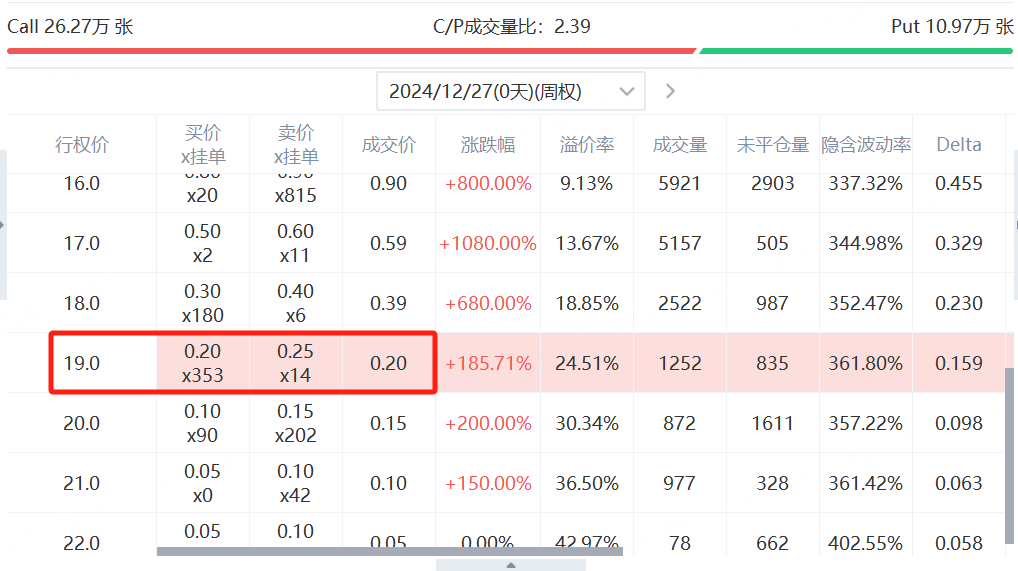 假设我们选择了 RGTI 12月27日到期、行权价为 19 美元、权利金为 20 美元的看涨期权。以下是该策略的基本情况: