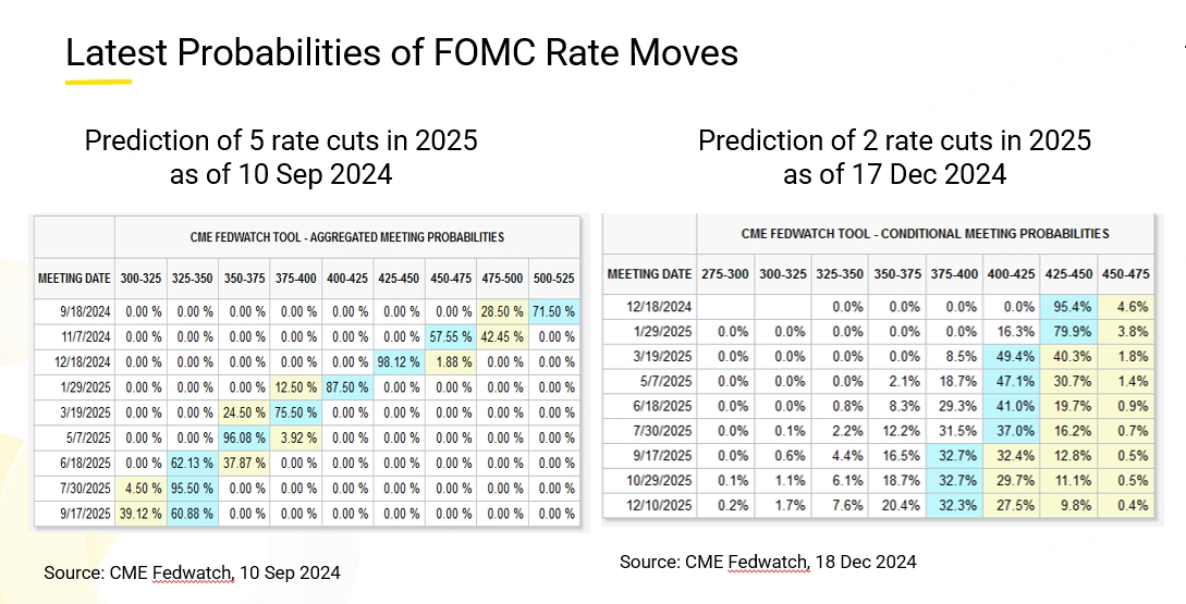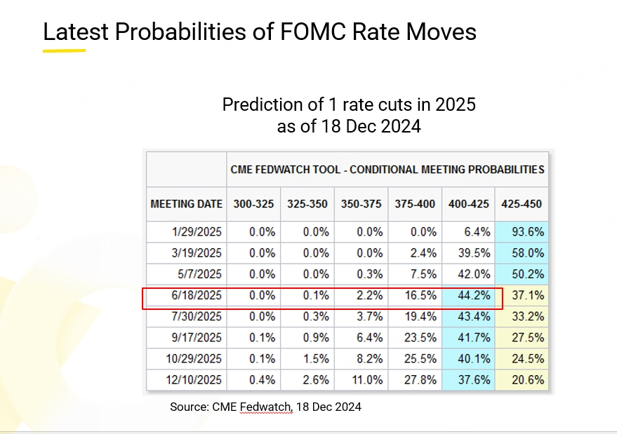 2024年在9月份,市场参与者预计2025年会有5次降息。上周,市场预计2025年会有2次降息。