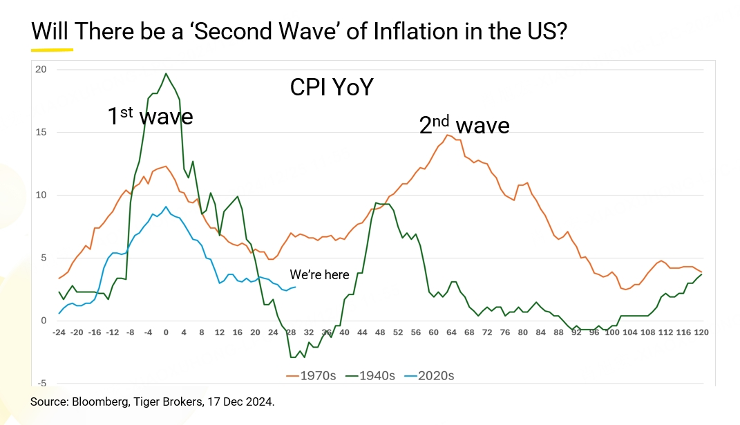 其次,投资者担心特朗普的扩张性计划、对移民的打压和关税等政策,会导致第二波通货膨胀。