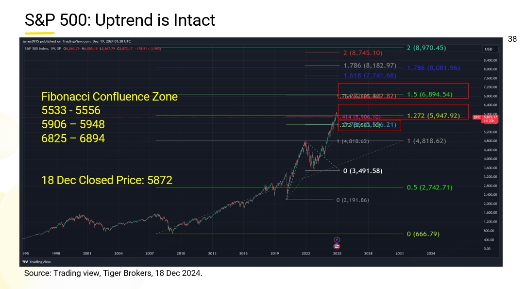 结合斐波那契来看,我认为 $标普500(.SPX)$ 2025年的目标价格是在6850点。