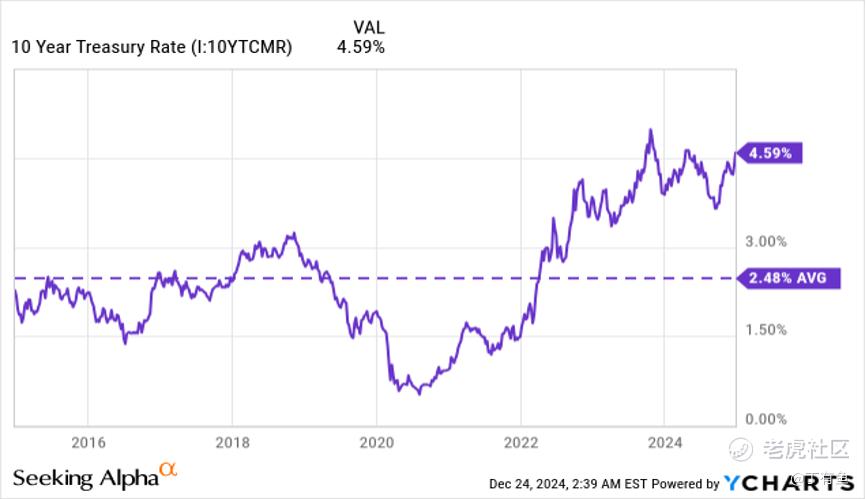 过去十年的平均无风险利率为 2.48%,这是我计算 CAPM 的核心变量。我使用平均值而不是当前的 10 年期国债收益率,因为过去几年货币政策的转变相当剧烈。此外,将当前国债收益率作为贴现率可能不公平,因为我们正处于美联储货币宽松的早期阶段。