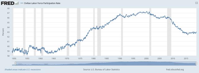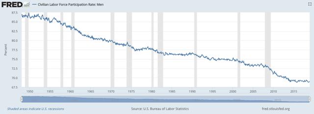 男性参与劳动力的人数尤其薄弱,他们的就业率近70年来一直呈下降趋势。