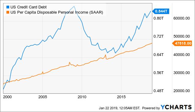 请注意,YCharts的这些信息有点落后; 目前信用卡债务总额高达1.02万亿美元。