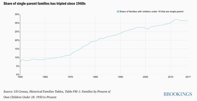 从经济上讲,为什么这是一个问题?这是一个问题,因为自20世纪70年代以来,双收入家庭一直在停止中等收入工资的下降。没有第二个人,或者至少有人看着孩子,而另一个人追求全职工作,单亲家庭将继续挣扎。苦苦挣扎的家庭无法像非苦苦挣扎的家庭那样花钱。