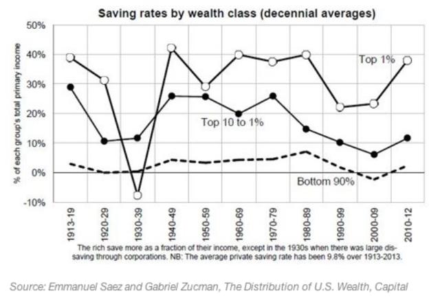 最低的90%的储蓄率至少从20世纪50年代中期到80年代中期逐渐增加,但从那时起,它已经崩溃。