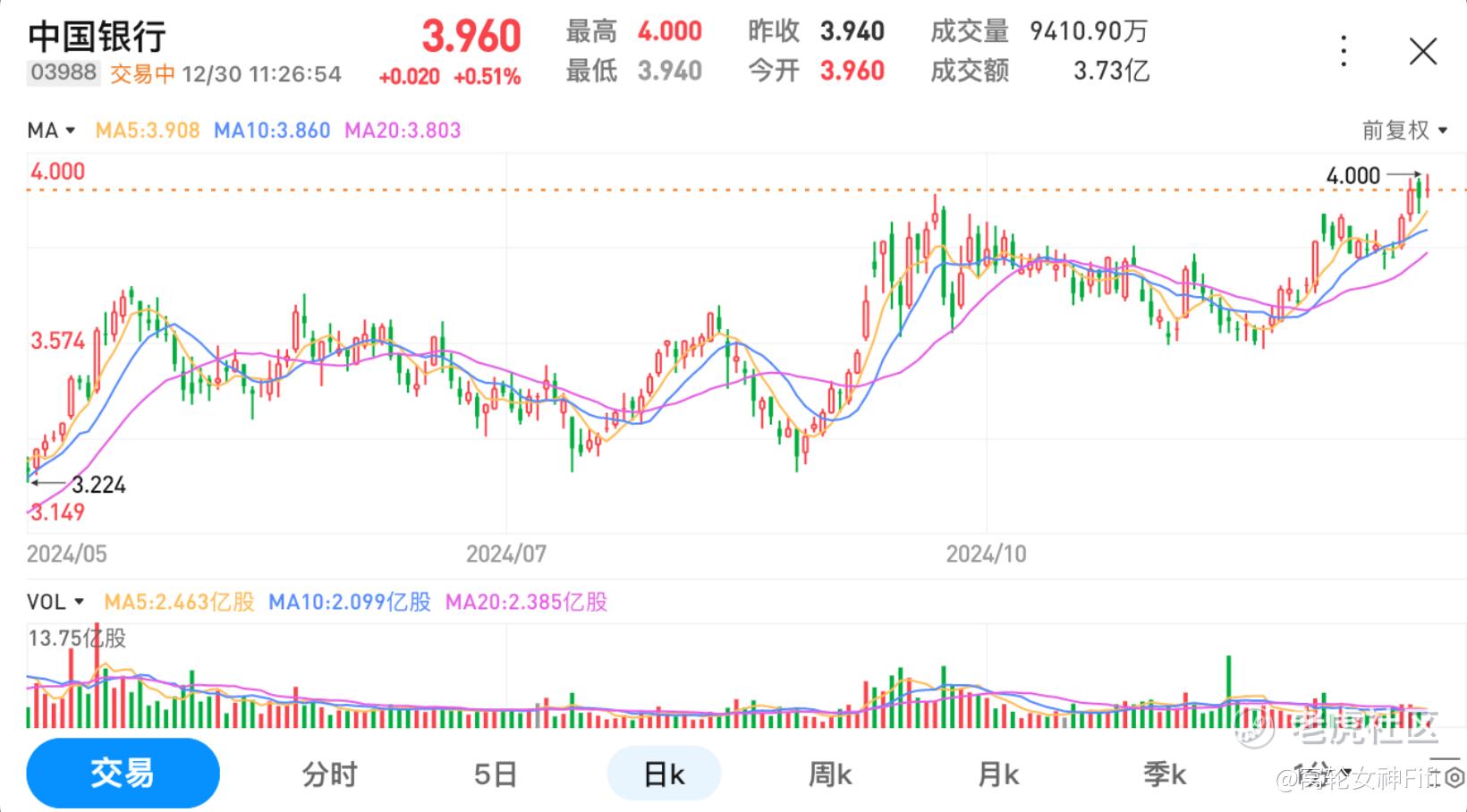 具体到个股,投资者可以关注如 $中国银行(03988)$ 等,其股息率较高且估值相对较低,具备一定的防御性。