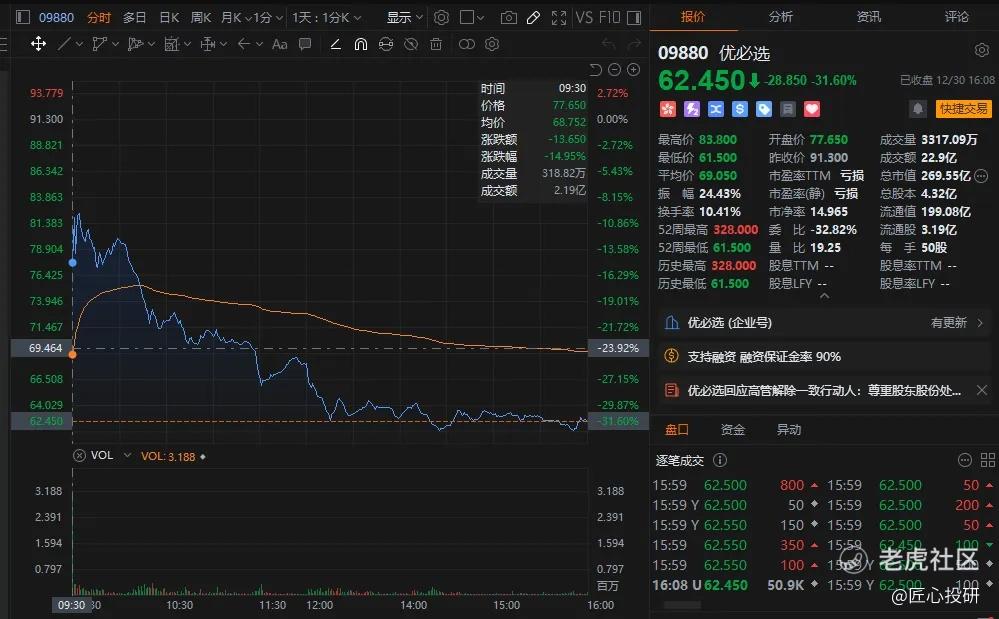 9880 优必选今天走出非常标准的解禁走势,竞价跌停开盘,小回弹,之后走低,收盘几乎最低价收盘,跌31%