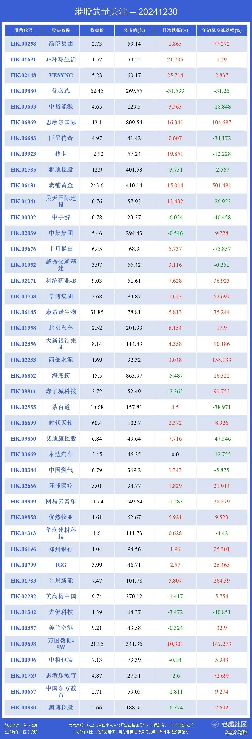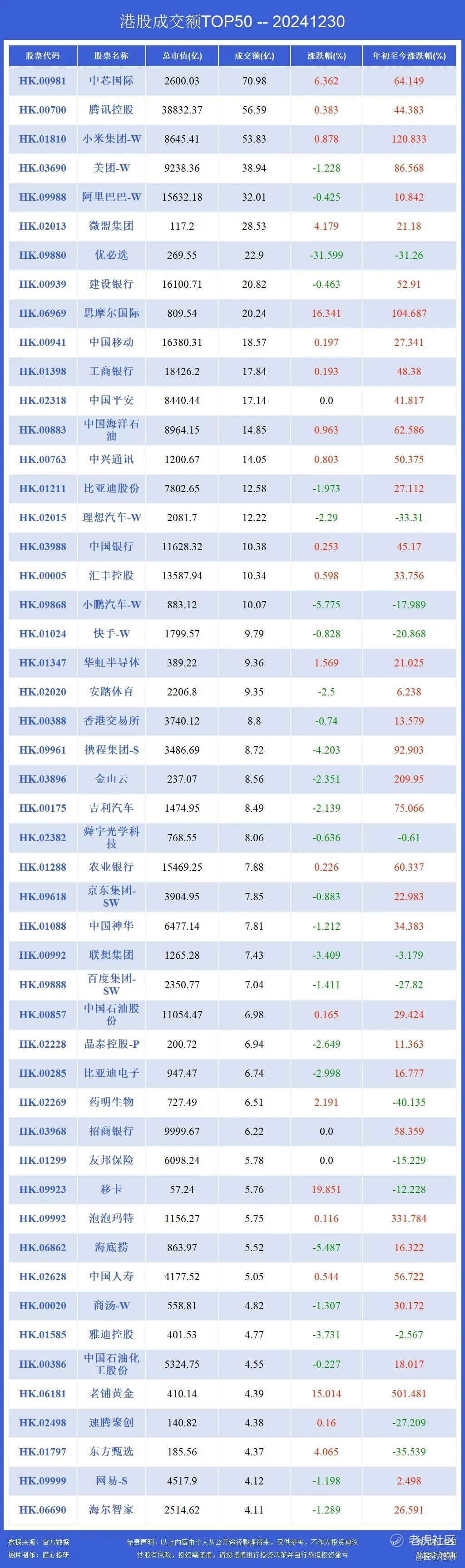 09880优必选,06969思摩尔国际,09923移卡,06862海底捞,01585雅迪控股,06181老铺黄金,06690海尔智家