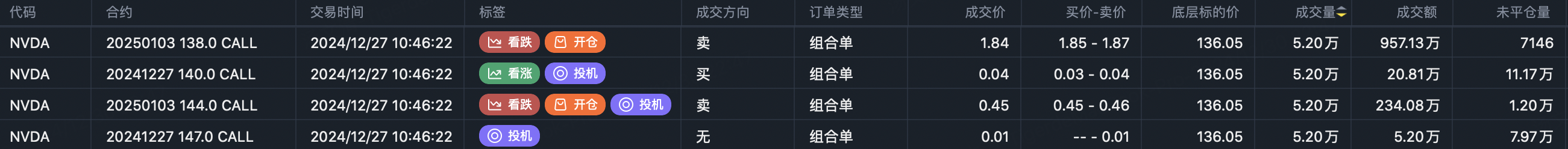 考虑本周收盘应该不会低于130,小做一下sell put $NVDA 20250103 130.0 PUT$ 。