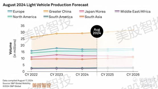 汽车 、工业领域市场 2024 年上半年触底,受宏观疲软影响,下半年复苏缓慢。2024 年汽车生产预计同比下降 2%(2023 年同比增长 10%),前景疲弱源于北美、欧洲以及日韩地区走软,中国保持稳定,2025 年汽车产量预计趋于平稳或略有下降。