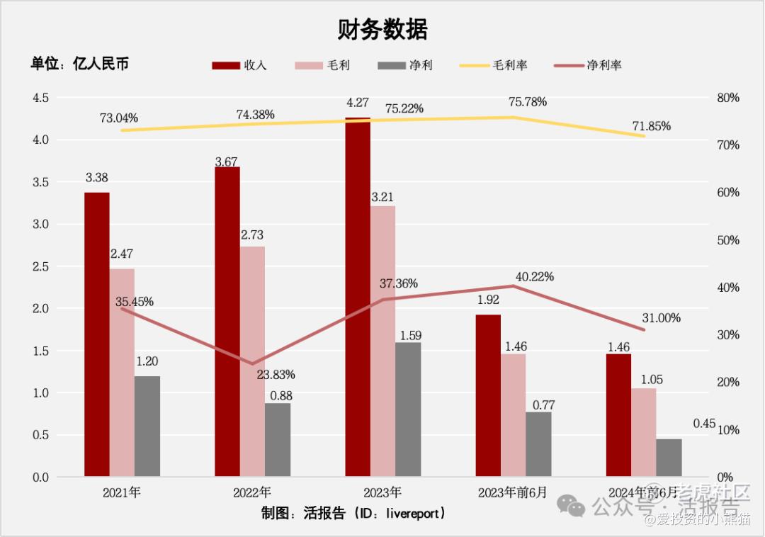 截至2024年前6个月,公司经营活动现金流为人民币3219.3万,账上现金2.96亿。
