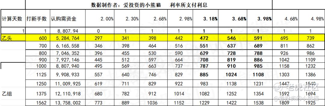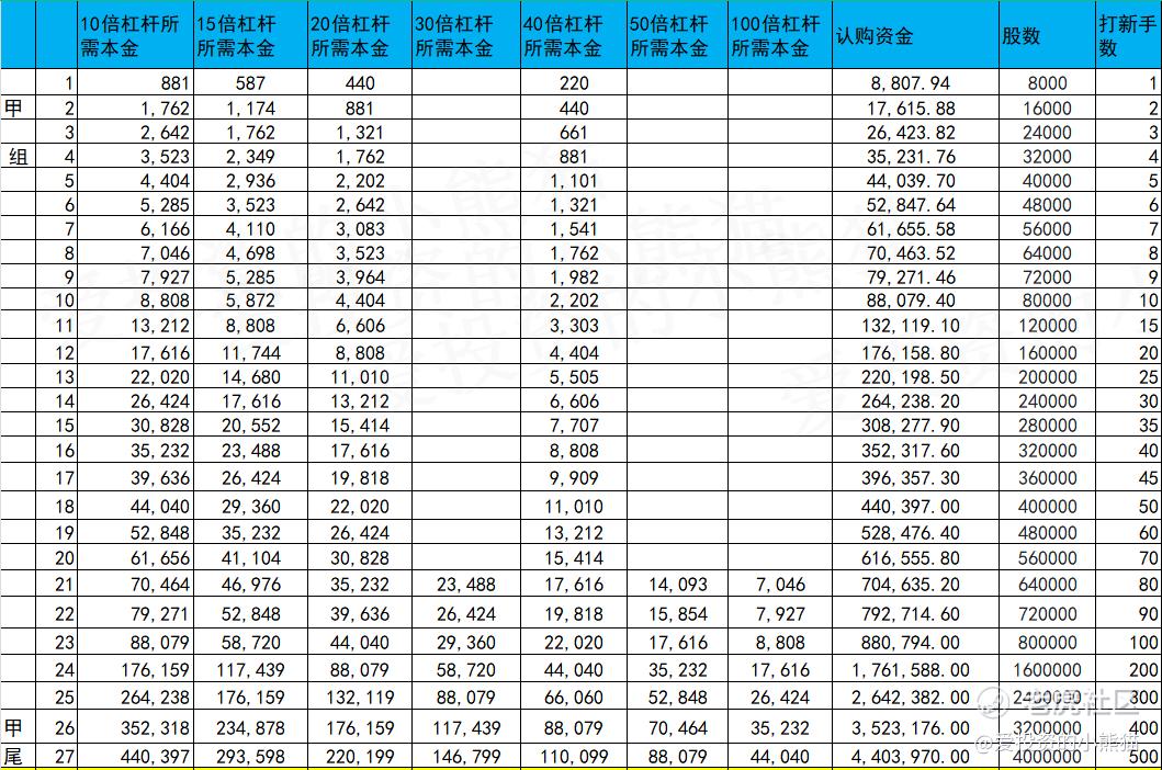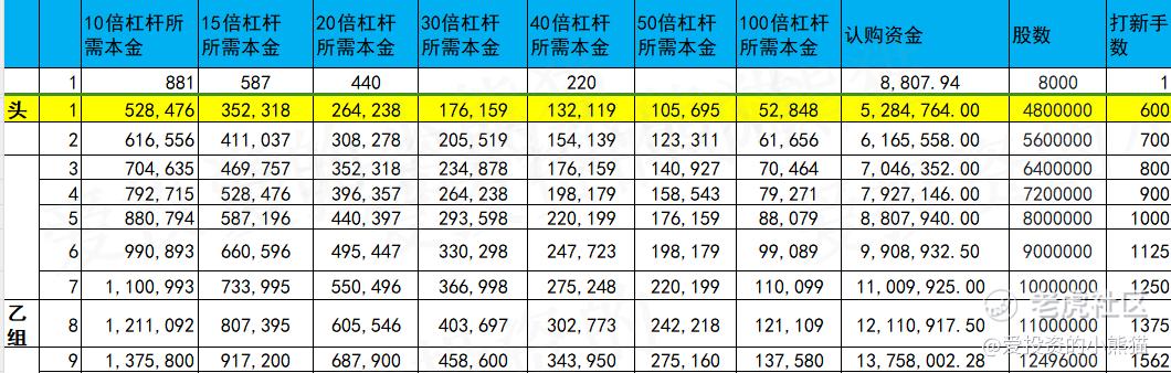 乙组头,这次是529万本金,乙组的各档融资所需要的本金还有融资金额对应如下表: