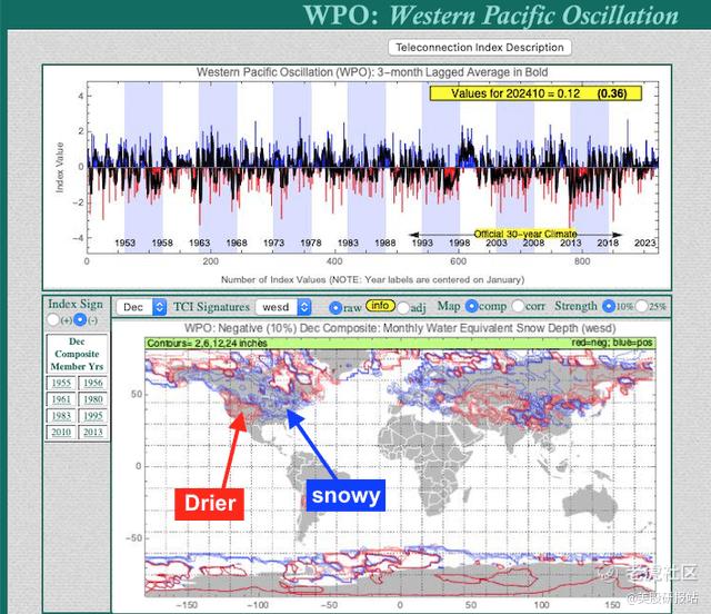 根据平流层温度模型和 WPO 指数(西太平洋涛动指数),12 月至明年 1 月,美国部分地区可能经历以下天气状况: