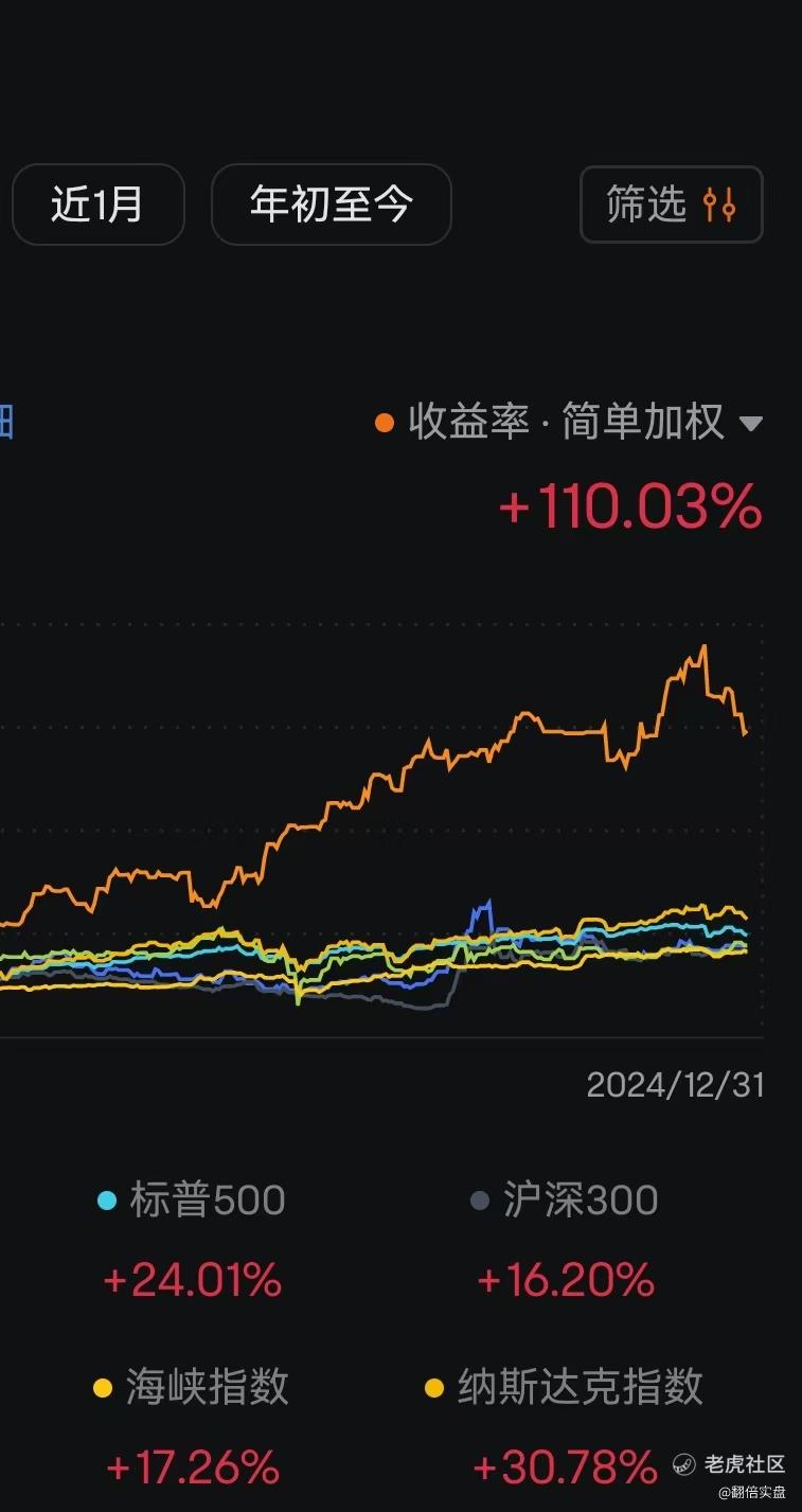 最终净值增长数据完成到了距离目标四还差一点:今年涨幅最大的指数是纳指28.64%,28.64%*4.054=116.11%,今年在12月17号收盘后净值最高冲到了146.27%本已远超目标四的116.11%且向目标五的176.04%发起了挑战!无奈最后半个月市场大回撤!直到昨晚24年的最后一个交易日都还在跌!!A股更是暴跌!!!导致净值数据被拖累,实际最终距离目标四都还差了一点!!!翻篇吧!!!